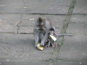 sok kedvesen vette el a banánt, volt amelyik rám ugrott érte de nem karmolt meg, egy majom meg csak megszagolta, s továbbállt, nem kellett neki a banán… de más majmok örültek neki. Megnéztük kortárs balinéz festők festményeit, s nagyon szépeket találtunk, térhatásúakat is…