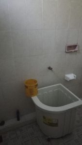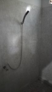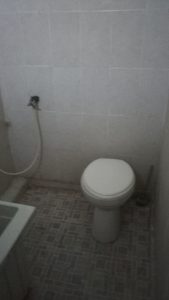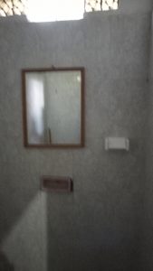 Kaptunk zuhanyzót, tükröt a konyha melletti helységbe, szappantartót mindkettőbe és fogasokat az ajtókra a törülközőknek, ruháknak, wc-t ami itt még ekkor lekísérős volt, vízzel mi öntöttük le. De most már, egy héttel később vízöblítéses, modern Wc-t kaptunk, igaz a munkás nem tudta teljesen felszerelni, nem ismerte itt mi hogy van, de be tudtam fejezni miután vettünk egy csillag csavarhúzót. Érthetően a wc űlőke felszerelése hozta zavarba.