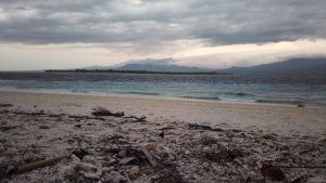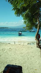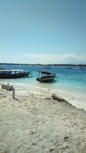 ahonnan jár komp át Gili Meno szigetére, s van itt rengeteg hajós is, aki ebből él. Átvinni a turistákat drágábban mint a komp, de gyorsabban, s pont oda a szigeten, ahol a szállása lesz. Mi is hamar találtunk üvegfenekű kishajót, motorost, ami átvitt kb. 10 perc alatt a szigetünkre,