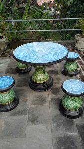 És beszereztünk a tetőteraszra egy kőasztalt s kis kő-ülőkéket hozzá,