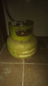 Mióta itt vagyunk, most először kellett gázpalackot cserélnünk, pedig elég nagy lánggal ég. A palack igen kicsike. Valószínű, sokkal jobban van sűrítve vagy jobb gázt használnak, mint orbanisztánban.