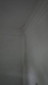 Csöpi, a pók visszatért – azaz el se ment! Sokáig nem láttuk, aztán egyszer reggel korán mikor felkeltem s bementem a nappaliba, ott volt a falon a szoba felső részén… aztán felmászott egy oszlopszerű kiszögellés tetejére – hát ott rejtőzik! Ezen oszlop tetején: