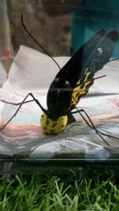 Bent megtaláltuk, percekig bámultuk, annyira szép és tekintélyt parancsoló. A kép nem adja át a méretét, de ha mondjuk az orromra szállna, simán betakarná az arcom. Gyönyörű kis antennái vannak, ezek segítenek neki bemérni a lehetséges párjelölteket, hogy gondoskodhasson az utódokról a rövid élete során. Nagyon szép, bársonyos szárnyai vannak és 4 háromszög rajtuk áttetsző, füstüveg-szerű.