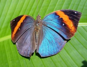 de aztán amikor kitárta a szárnyait, láthattuk a csodás kék és narancs színeit. A napfényben gyönyörűen csillogott a kékje.