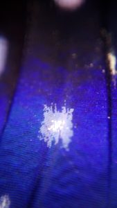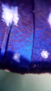 Próbáltam közelről is fotózni, de mivel a fényképezőgépem sajnos nincs nálam a mostani utunkon, csak telefonnal tudtam. Van ilyen kis nagyító lencsém, amit a telefon kamerájára lehet applikálni, azzal némileg el tudtam kapni a kis puha pikkelyeket, amik a szárnyat fedik. Felteszek két képet, hátha látszik valami. Sajnos kicsit homályosak lettek.