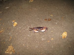 Sokat úszhattunk, snorkolhattunk a tengerben. Egyik nap a mély vízben azt vettem észre, egy rák úszik pont felém a nyílt tengeren. Nem nagyon értettem, kitértem útjából de irányt váltott ő is, s a vállamba kapaszkodott, de úgy ne fájjon nekem. A tenyerembe vettem, megértettem hogy kimerült nagyon. Kivittem a sekély vízbe, közben Napsi lefotózott vele – sajnos e felvétel sok másikkal együtt megsemmisült, de mégis van egy fotó, mert pár nappal később hazafelé sétálva az úton egy majdnem ugyanolyan rák jött szembe velünk. A rák a sekély vízbe sem akart lenni, a partra vittem s egy faág s levelei mellé tettem, hamar bebújt alá, s több óra múlva is még ott pihegett szegény…