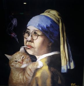 Az épületben, ahol az iroda volt, találtunk egy kis galériát érdekes képekkel, egyet muszáj volt megörökítenem, a leány gyöngy fülbevalóval – mondjuk 50 évvel későbbi változatát. 😀