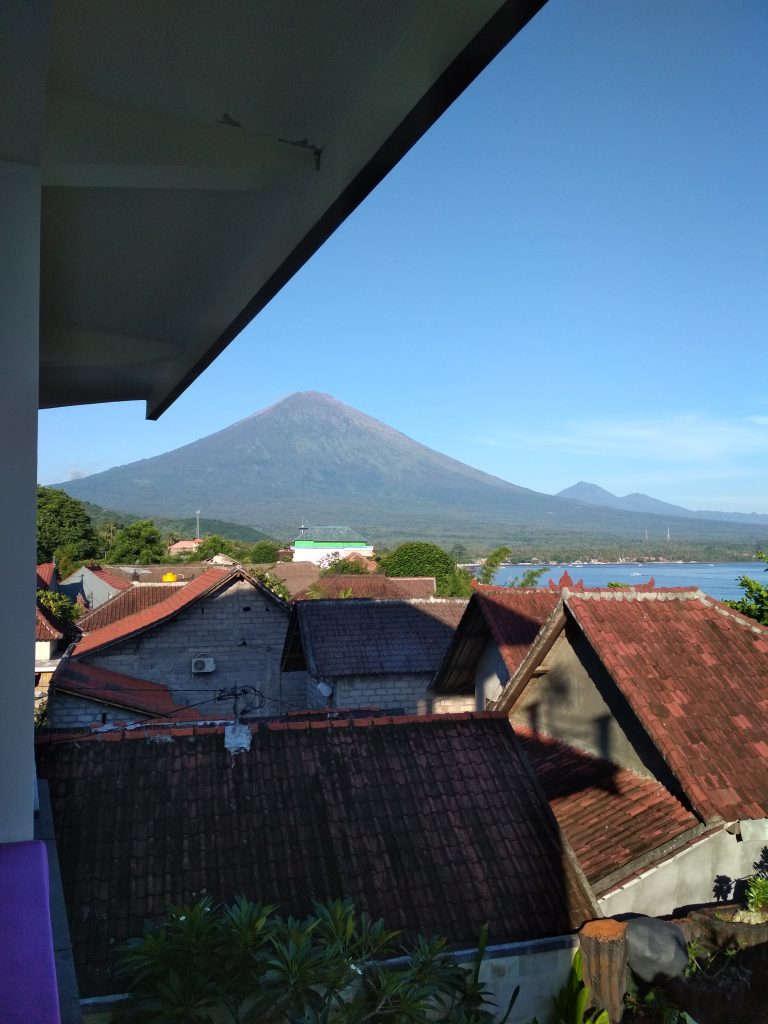 Ebéd körül érkeztünk meg, G. úr már várt a hoteljében minket s lefoglalt nekünk egy szobát ismét, ezúttal az emeleten… ilyen csodás volt a kilátás a teraszunkról!