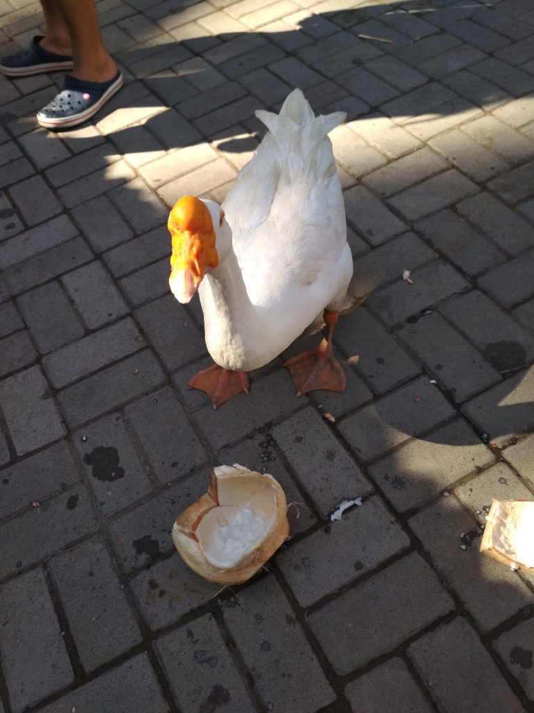 És leugrottunk Charlie Csokigyárába, ahol a nagy hőségben Augustot megetettük kókuszdióval, nagyon hálás volt érte….