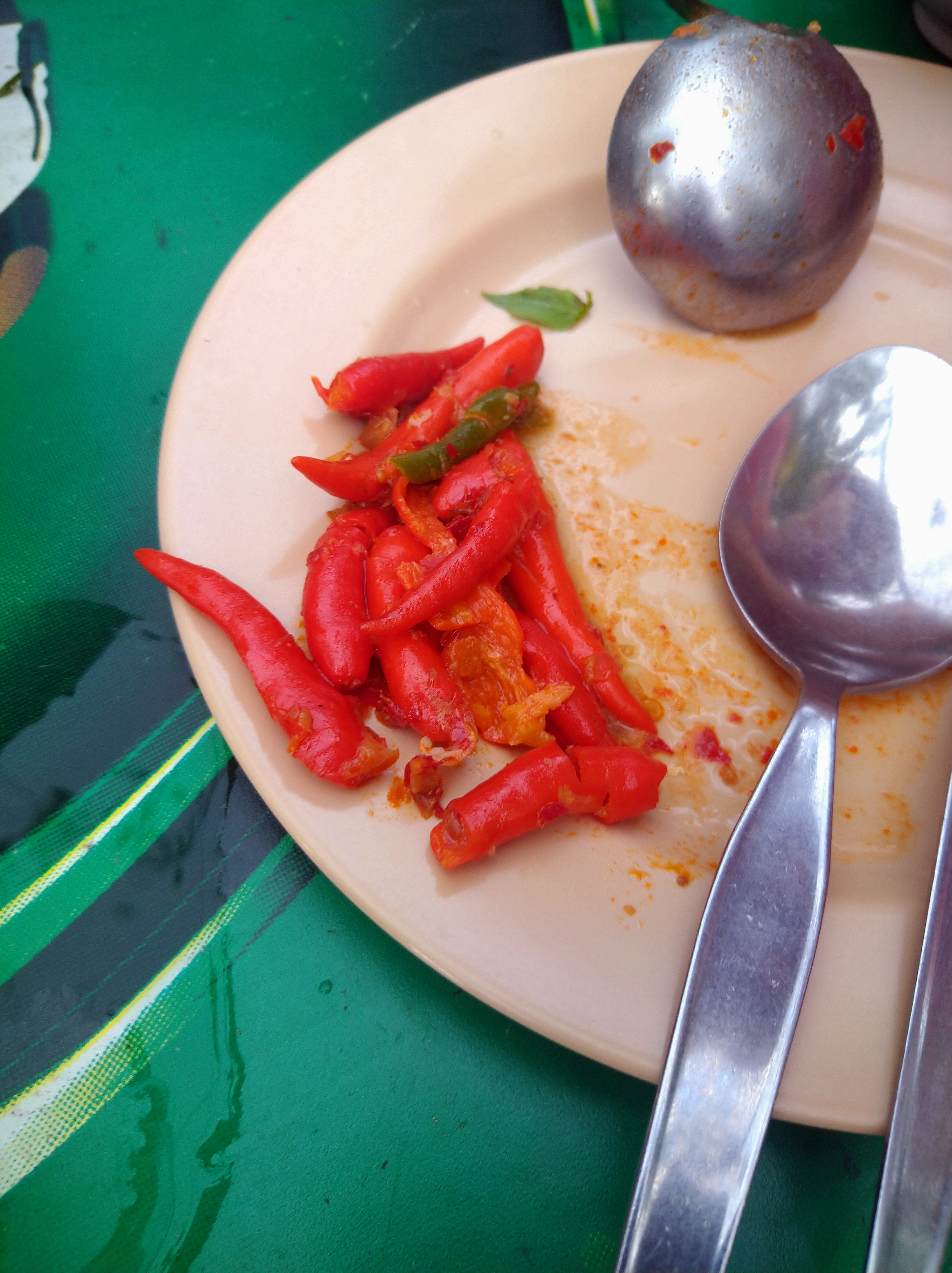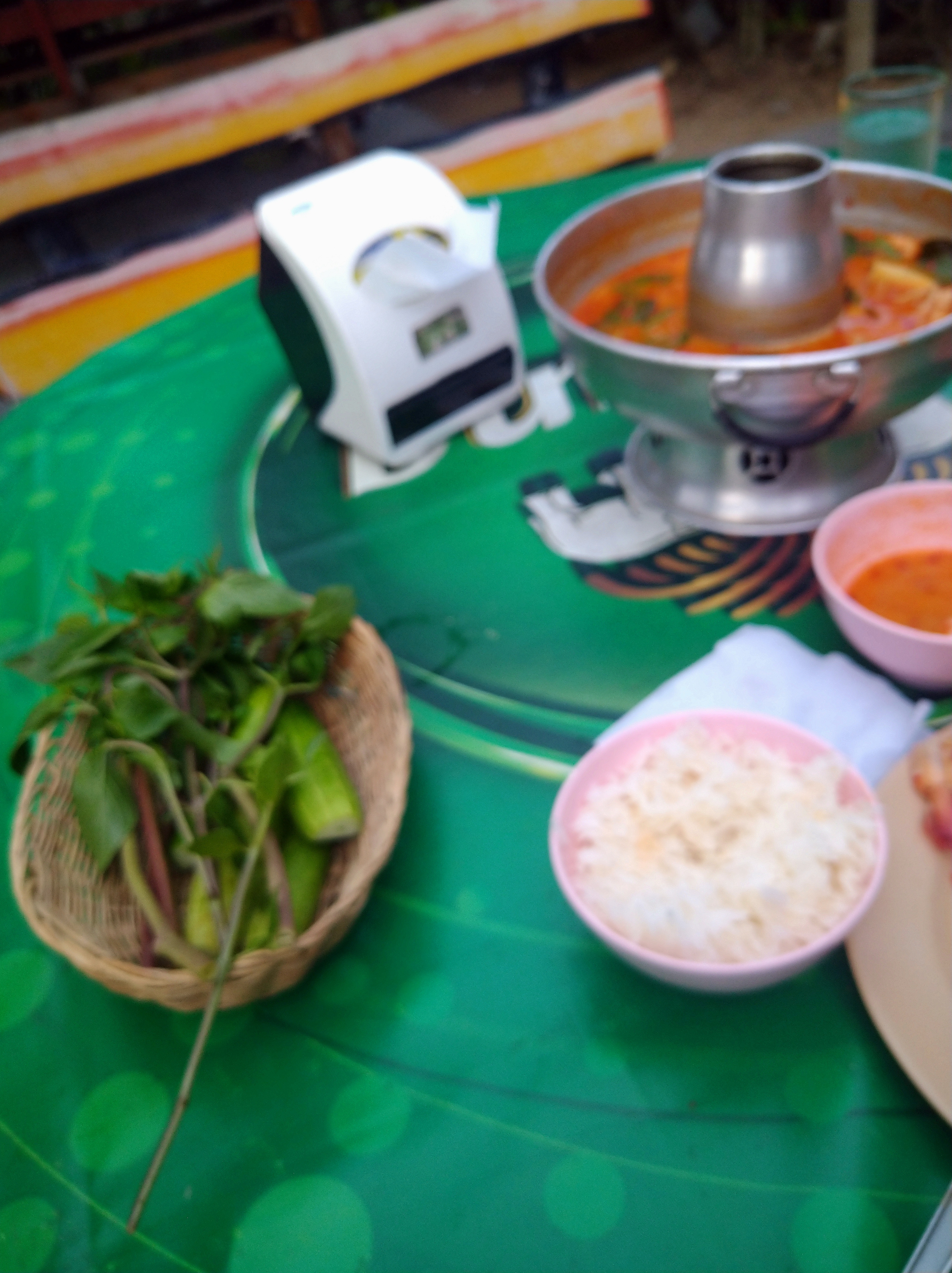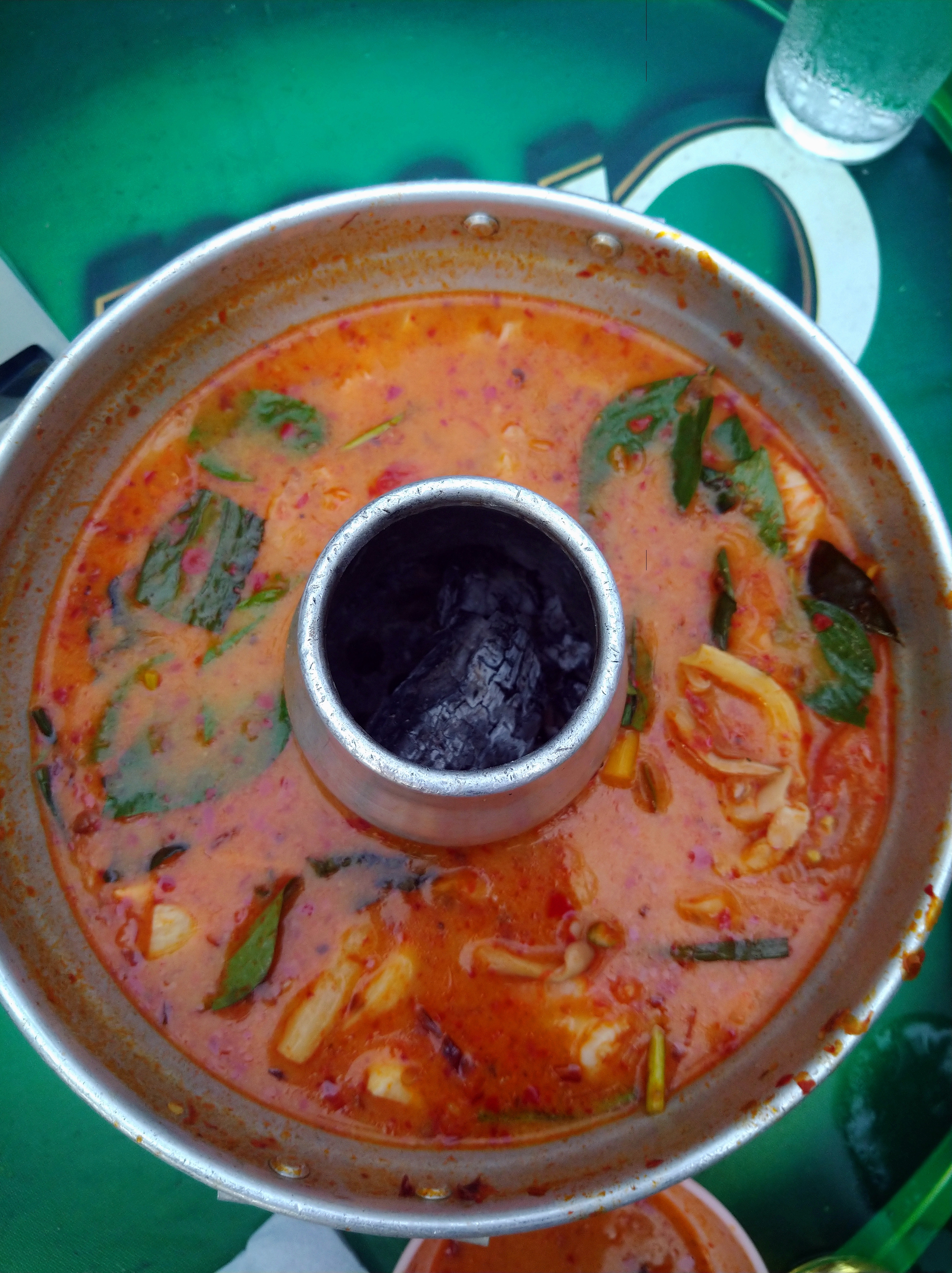 A Tom Jam Kungban van ugye Kung azaz sok garnélarák, finom helyi gomba, sok chilipaprika, itteni gyömbér ehetőre megfőzve s persze más fűszerek mint például a citromnád… és krémes, amit sűritett tejjel érnek el. A titok a sűritett tej, chilipaprikák aránya.