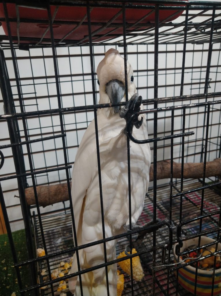 gubbasztott egyedül egy kalitkában, látszott uncsizik nagyon- mondtam neki, hát téged nem szabad igy tartani, neked szórakozás kell s hogy törődjenek veled – hát nagyon barátságos lett, odaugrott hozzám, Napsi szerint megtetszettem neki. Még hangokat is adott ki s tartotta a fejecskéjét, simogassam meg…