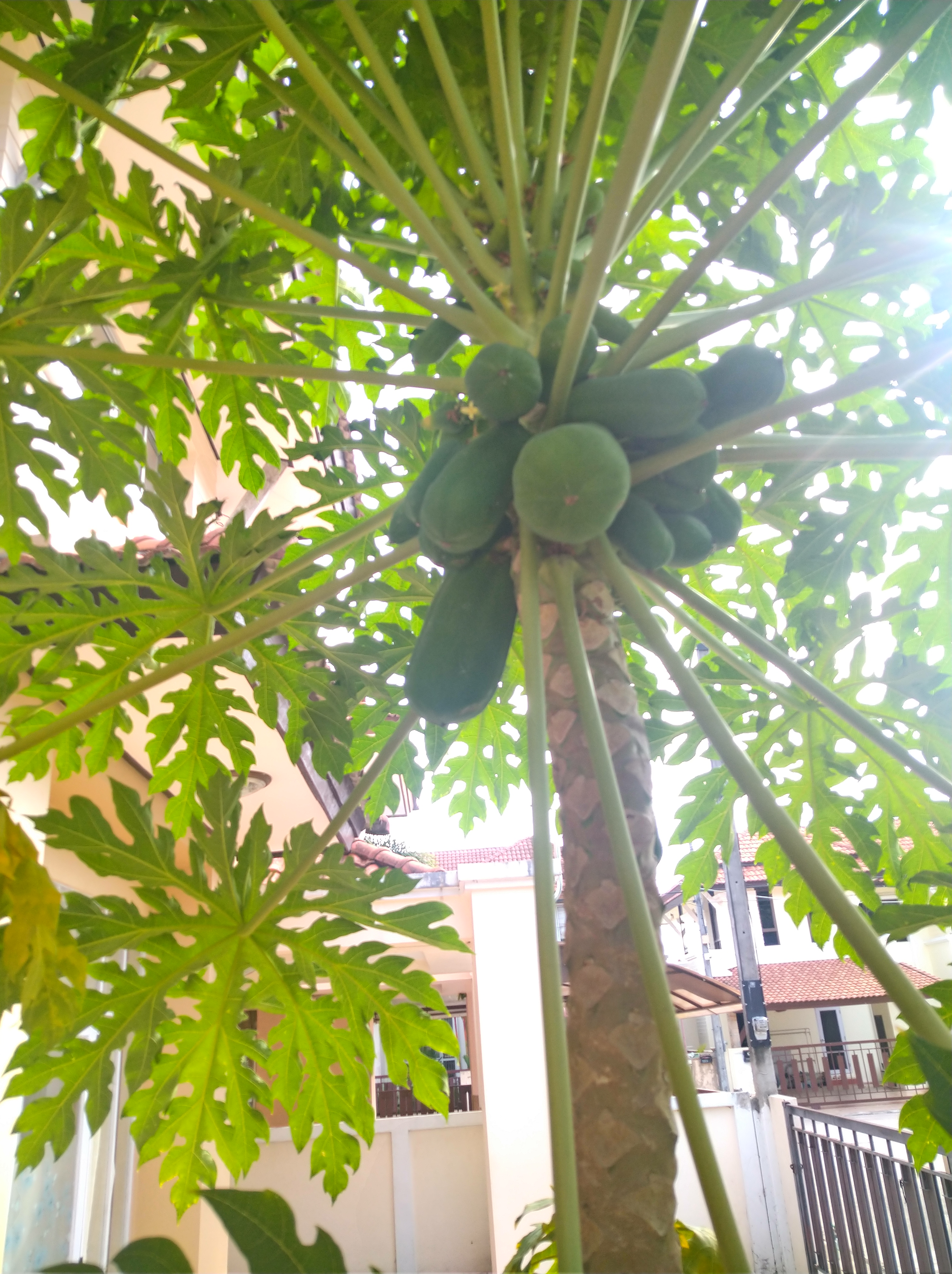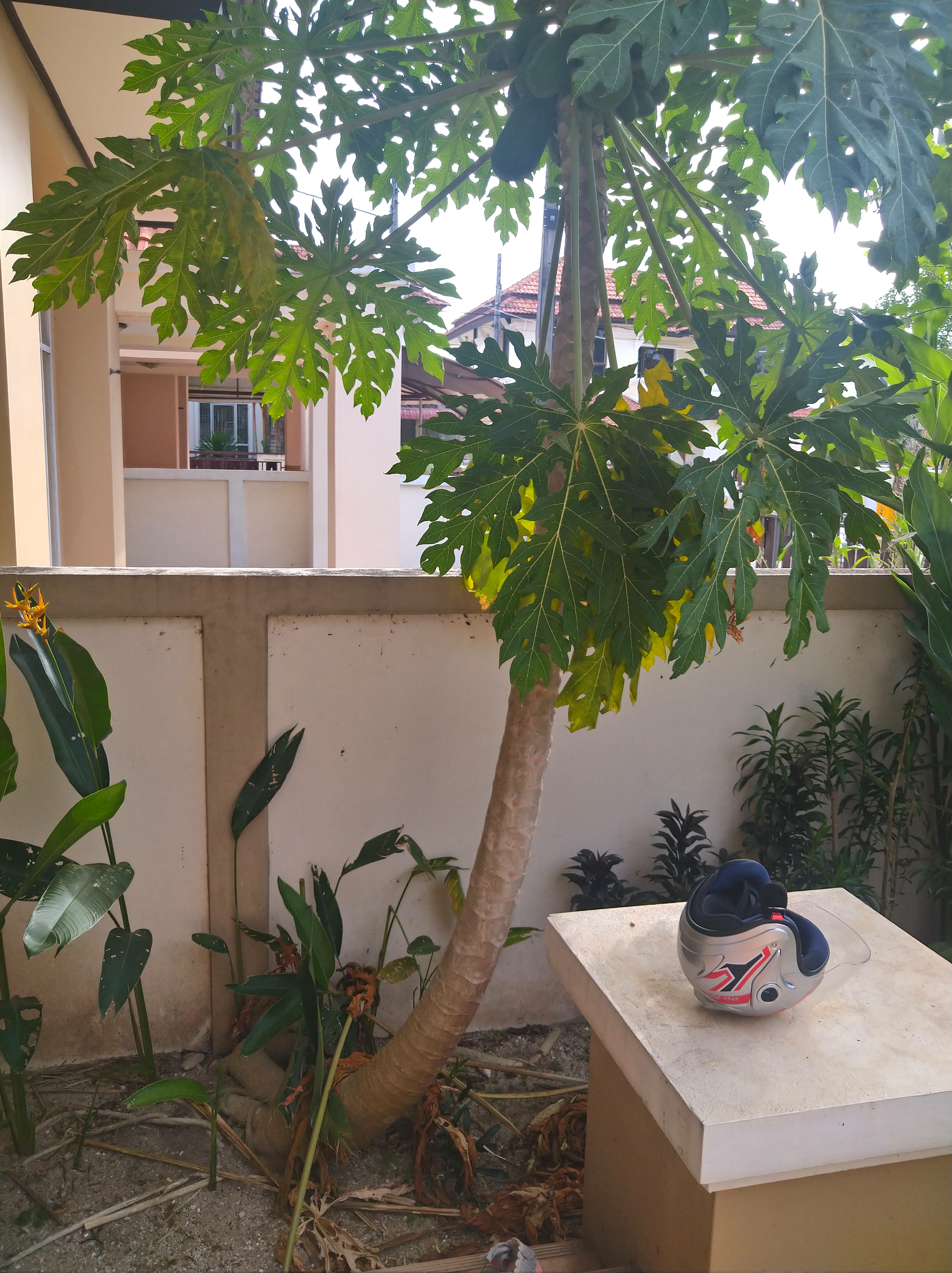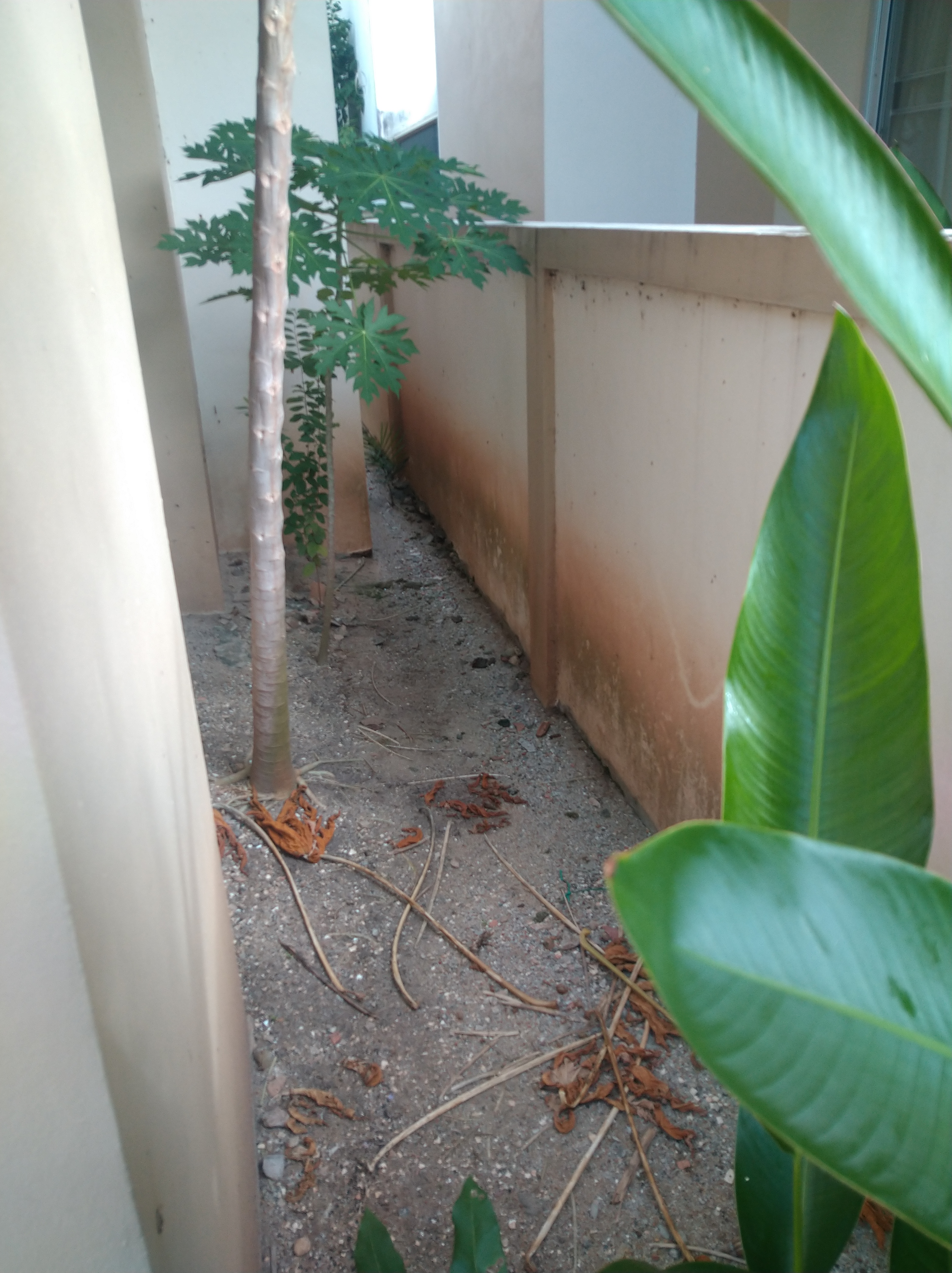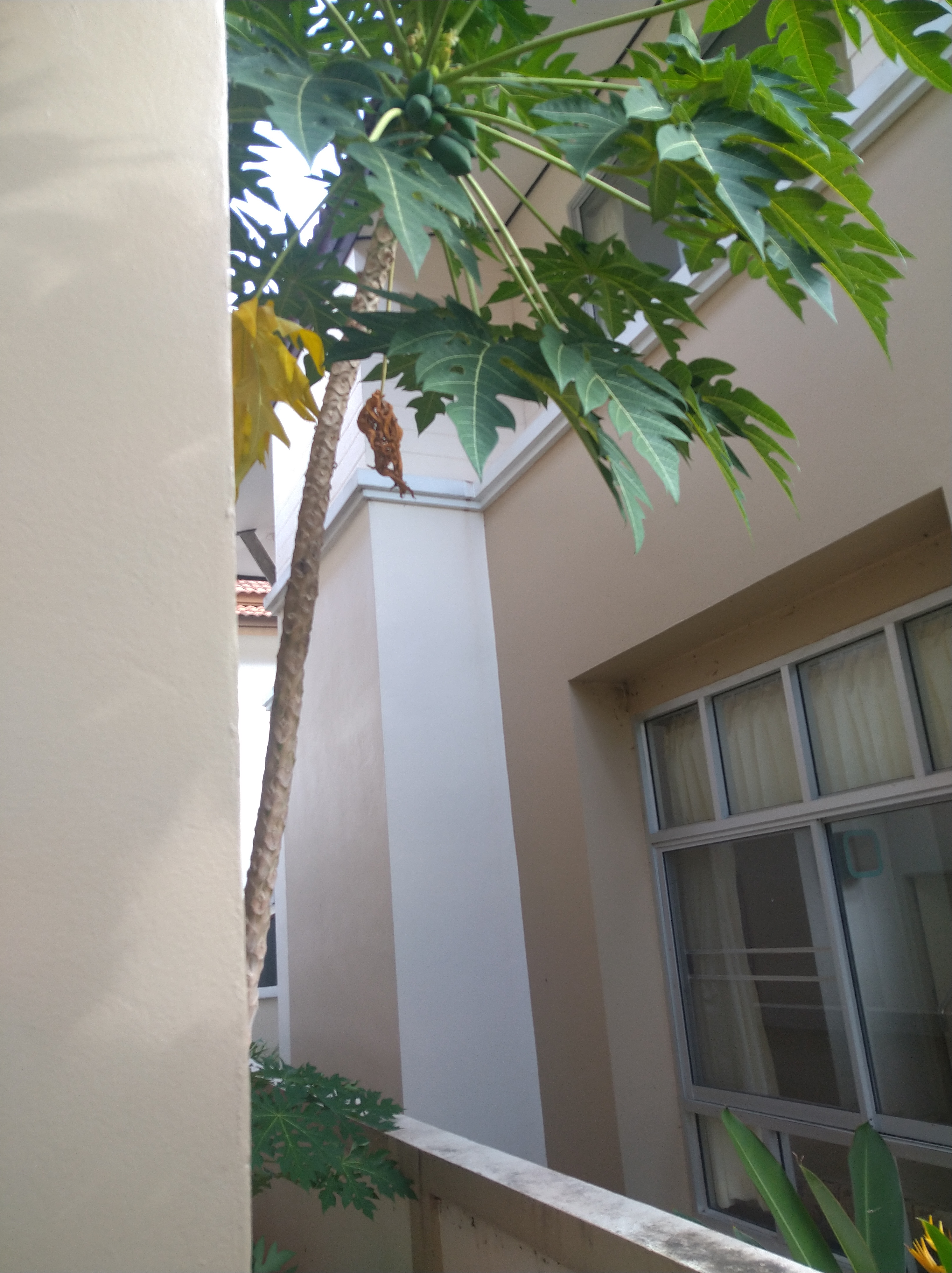 Ja, még a „kertünket” nem mutattuk be, tessék, papayafákkal…