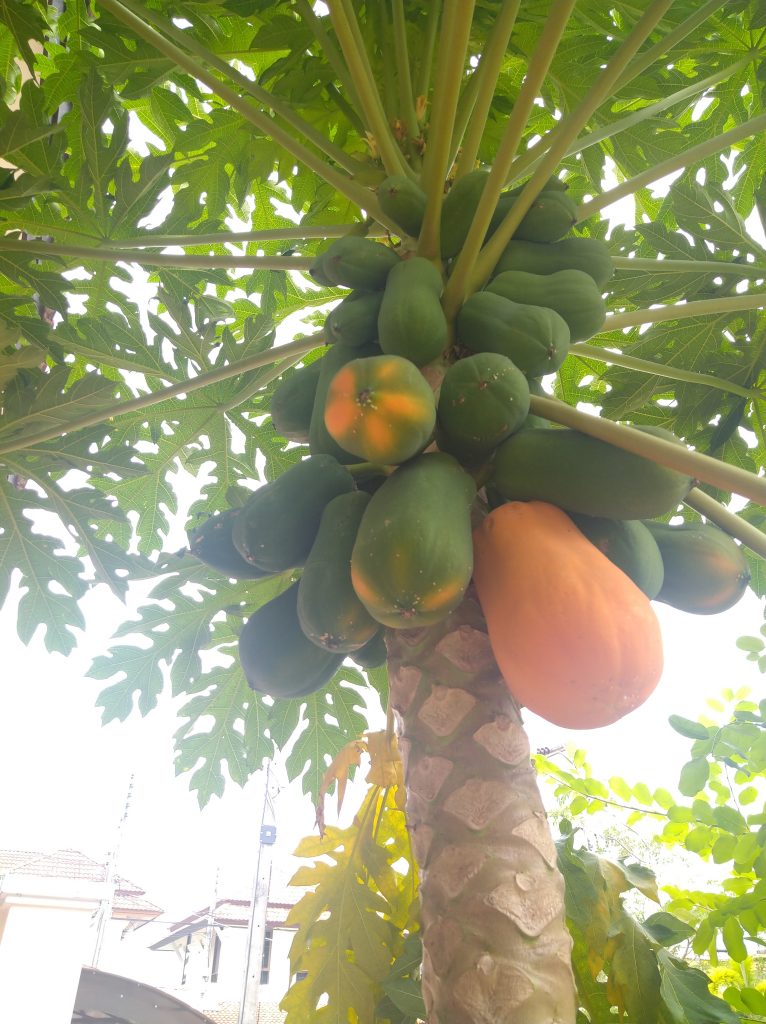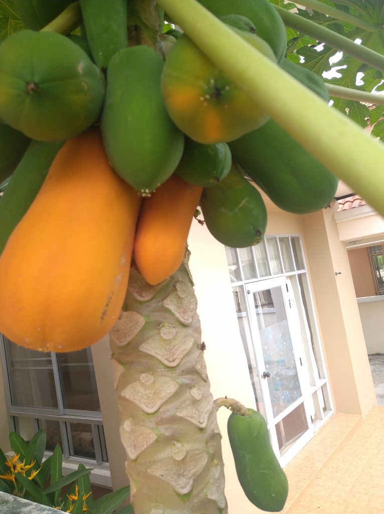 Szóval alul vannak a nagy papaják, felettük kisebbek, igy egy fa ad néhány óriásit s közepest s sok kisebbet…