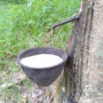 Hétvégén kimozdultunk, a Google mapsen kinéztem egy vizesést, ami nincs is nagyon messze… odamentünk s nem volt vízesés…talán az esős évszakban van, mert egy tó maradványát azért láttuk. Viszont láttunk csapolva kaucsukfákat, ime: