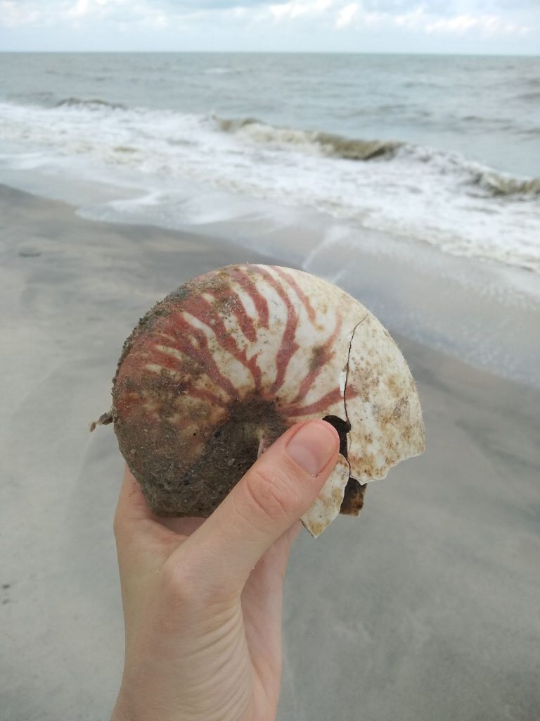 Nóri talált egy szép nagy Nautilus csigát a legelső alkalommal, mikor a szünetben a partra mentünk.