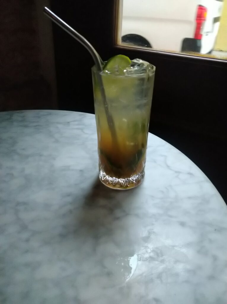 Én Enpenadat kértem enni, Napsi bruscetta szerű spanyol ételt evett karamellizált sült hagymával s feta sajttal. Életemben először ittam rumot – még Balatonlellén igértette meg velem egy angol úriember, ha eljutnék esetleg a Caribi térségbe, kostoljak kézműves rumot. Hát, megtettem, s nagyon érdekes volt. Finom volt, bársonyos. De Napsi Mojito koktélja igen izgazdag volt. Utána kértünk még egy kukoricafasirtot, mozzarellával a tetején, édes volt. S ittunk még 2 koktélt, mert tartott az 50% happy hours még. Én egy Secoladát ittam, Napsi egy Isla Grandét. Az én koktélom kissé kesernyés is volt, mert a rum mellett ananász-sört is tartalmazott, ami nagyon jellegzetes de számomra különlegesen finom izt adott neki. Napsi koktélja kókuszos-rumos volt, s nagyon nagyon finom… E helyen a 3 ételért, 3 koktélért s a pohár jeges rumért 50 USD-t fizettünk… Itt ez elég olcsónak számit…