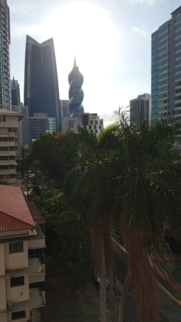 Panama city nem igazán szép, de nem is csúnya, olyan átlagos modern város. Ahol lakunk, ott sok étterem van, nagyon biztonságos városrész – naná, itt vannak a Bankok, ez itt a helyi City…