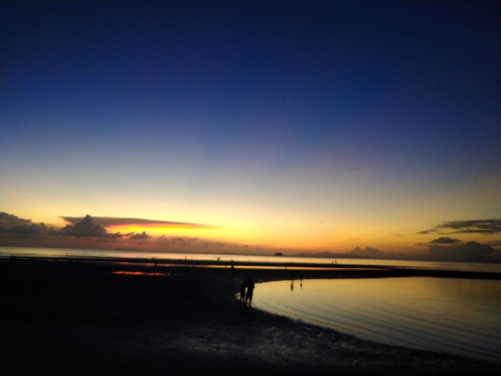 Azután mikor éreztük elég a napból, árnyékba vonultunk majd átöltöztünk és átmentünk a Sunset Beachez. De túl erős volt a nap 3 óra felé még, igy megálltunk egy Amazon kávézónál kávézni. Napsi ivott egy jeges kávét, majd átrobogóztunk a Sunset Beachre. Ott már nagyon apály volt, esély nem volt a snorkos helyre bejutni, mert Napsi még időben észrevette hogy nagyon hosszú tüskéjű tengeri sünökkel van tele az egész tengerpart a sekély vizben. De a part lelőhelyes volt. S igazán szép csigaházakat sikerült találni, az egyik legnagyobb csigaházat eddig, s ezt nekem sikerült megtalálnom 🙂