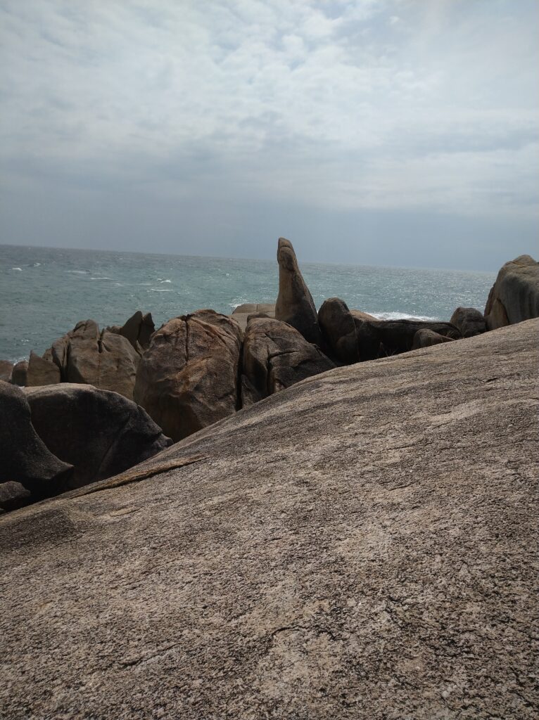 Aztán jött az utolsó nap is, ugyanolyan szeles, viharos idő volt, esőre állt de végül nem esett. Szürke ég s tenger, a partok lezárva. Snorkolás szóba se jöhetett. Elmentünk a szentélyhez a partra s ott keresgéltünk kagylókat, illetve Napsi, én leültem egy padra. Nem volt lelőhelyes, feladtuk. Megálltunk a tegnap felfedezett francia pékség 2. üzleténél de nem volt jó ott nekem a kávé, süti se nagyon volt. Igy elmentünk ahol előző nap voltunk e pékségláncnál s ott nagyon finom sütik voltak ismét, s finom espresso kávé. Azután lementünk egy hosszú beachre, most csak ittunk ott. Majd találtunk egy tradicionális tésztézót, tradicionális forró levest ettünk mint Bangkokban is, ott is ilyen levest ettünk párszor. A parton ittam kókuszlevet, napsi smoothit, próbált gyűjtögetni de erős szél volt, elvitte volna a kávét is, kókuszt is, táskát kellett rátennem, A kókusz isteni volt. Aztán még egy nyugágyra leheveredhettem, Napsi keresgélt még csigákat, párat talált de nagy szám nem volt. De jól éreztük magunkat, hamamentünk, elmentem utoljára még 5 l vizért majd leadtuk a robogót s megköszöntük. Majd újra az olasz pizzéria jött, ezúttal kipróbáltam egy szalámis, sonkás, olivabogyós articsókás 4 évszak pizzát, útobbi feltétet Napsinak adtam. Ismét egy pizzaköltemény, én nem szeretem a magyar szalámis, sonkás pizzákat, de ez a hihetetlen finom olasz szalámi és olasz sonka – hát imádom!!! Ezek nagyon rendben voltak, meg olajbocsó, csiliszósz… Napsi evett vega pizzát, nagyon finom volt az is. Csak vizet ittunk, otthon borozunk majd, az a terv. S akkor érkezett megint a tiramisu, s mikor megettük már tényleg elköszöntünk. Otthon kiderült, kellene a borhoz nyitó. Nem volt bornyitónk, itt minden könnyen nyitható, de ez hagyományos parafa kupakos volt. Itt eddig minden bor csavaros kupakú volt amit itt vettünk.. igy ezt majd otthon fogjuk meginni. Aztán korán elmentünk aludni. Nekem nem sikerült, a májam sokat dolgozott. A sokadik pizza már eléggé megviselte, igy csak hajnali 3 után aludtam el.