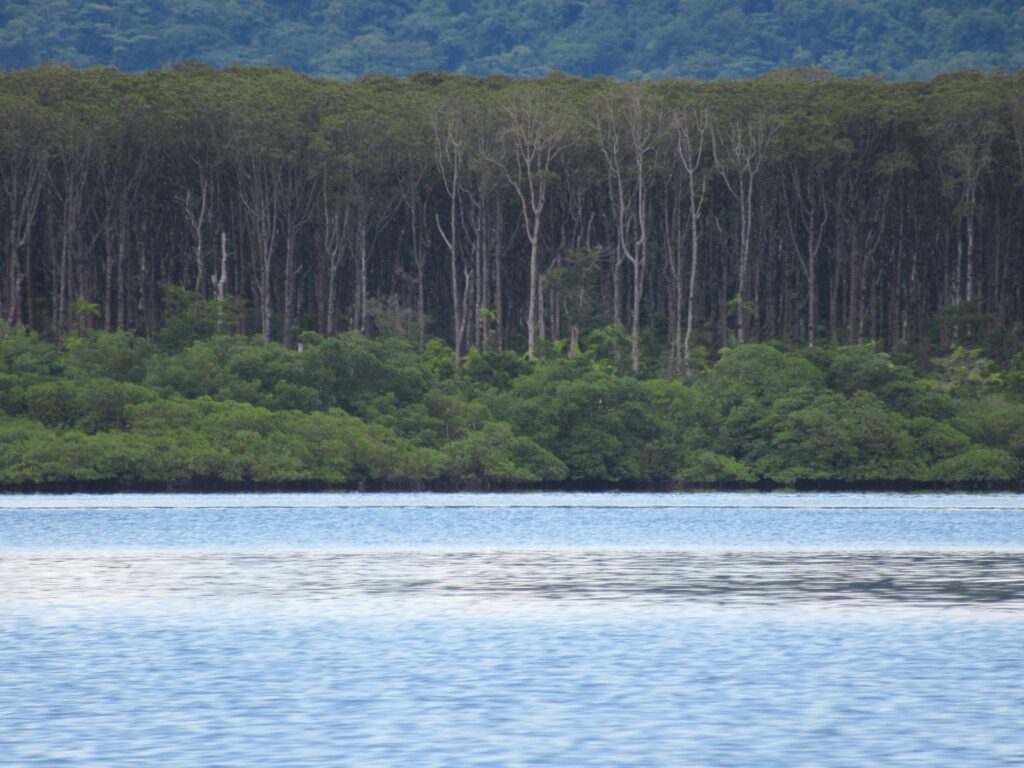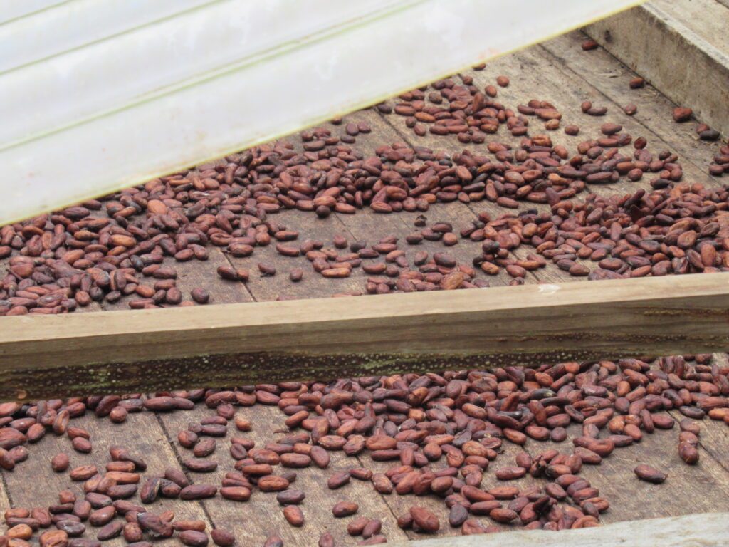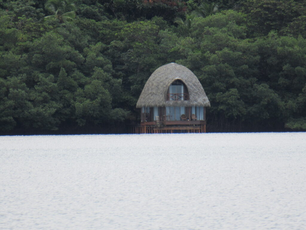 4. Meglátogattunk egy csokikészitő farmot is. Ez már a panamai földrész partján volt, s csodálatos viziúton vitt a vizitaxi… Ha jól emlékszem 40 dollár volt a viteldij, de megérte… az a csodás látvány… Isla Solarte egy része igazi útvesztő, a tengeren rengeteg kis szigetecske, földdarab mangrove fákkal, és egy egy titkos öbölben vizre vagy egy ilyen mini szigetre épitett házakban élnek emberek, előtte esetleg a csónakuk van lehorgonyozva vagy kis vitorlás… és ha körbenézünk, olyan mintha egy tóban mennénk, mert körös körül szárazföld – ugyanis Bocas szigetei körben egymást átfedik s olyan a látvány mintha körbe zárna a szárazföld – de a szigetek között átmegyünk persze…. s ismét a nyilt tengeren vagyunk.