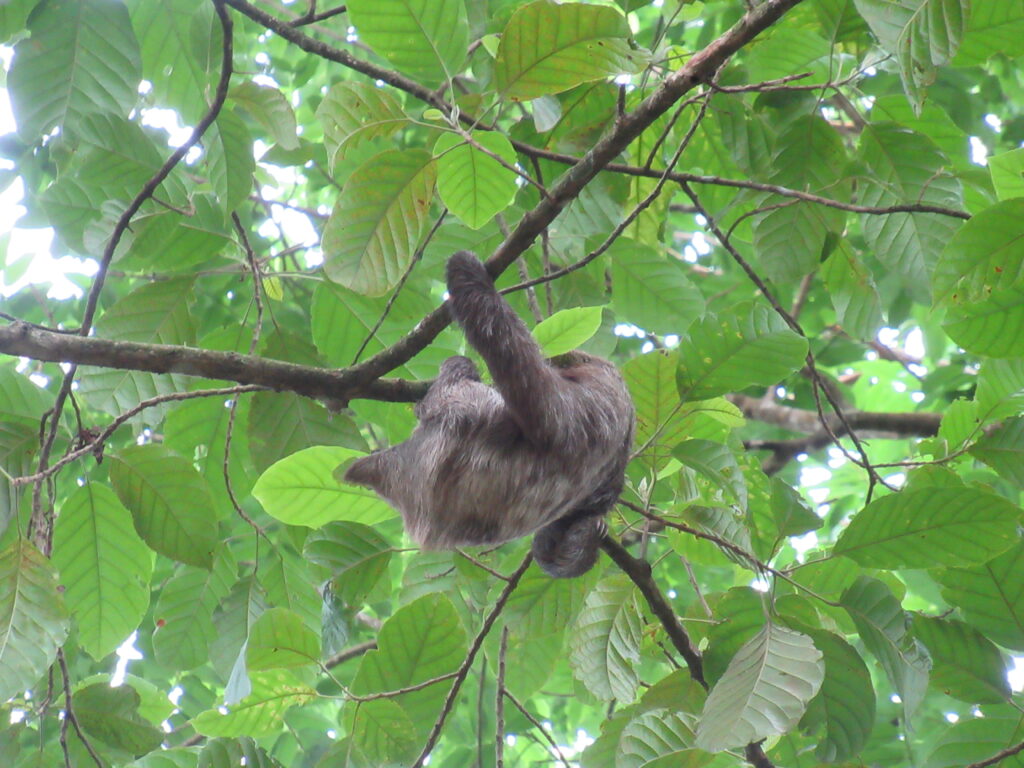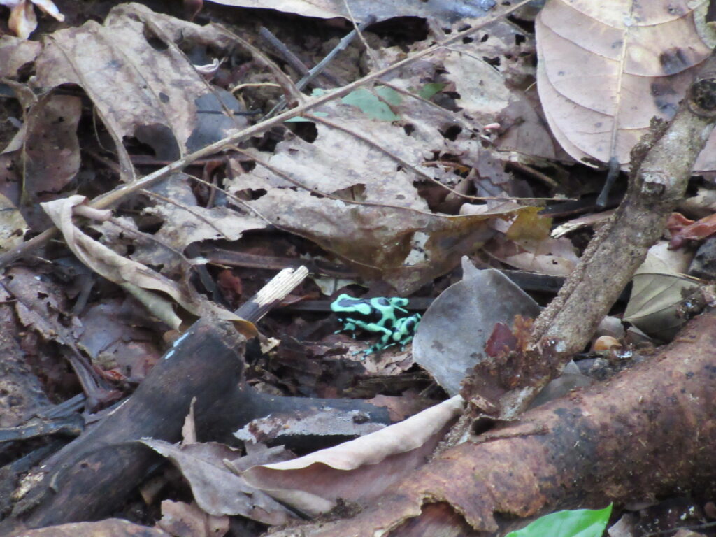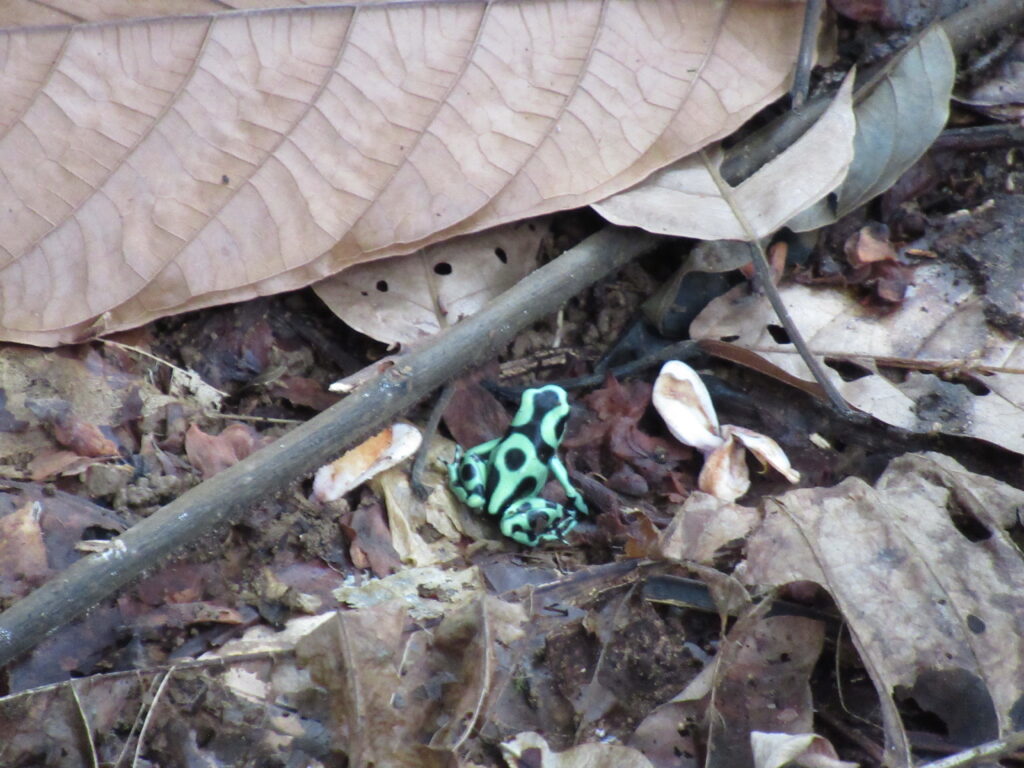 Az út motorcsónakkal is legalább 40-50 perc volt. A parton várt a farm egyik tulajdonosa, aki természetvédő, az Usa-ból költöztek ide. Kissé őszülő hajú férfi, elmondja hogy a férjével élnek itt. Ő kalauzol végig a farmon, közben egy helyi fiatalember előremegy keresni különleges élőlényeket. Hamarosan talál is lajhárt, majd megmutatja nekünk a zöld nyilméreg békát.