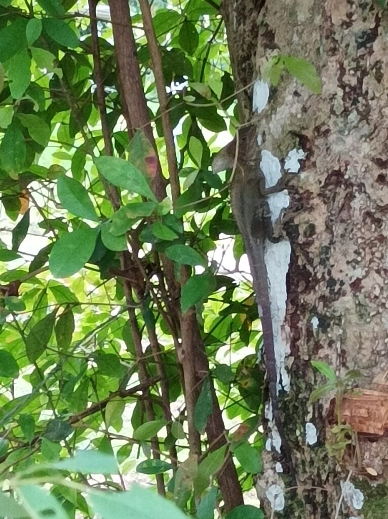 Miután szép csigákat, süniket gyűjtünk, elindulunk hazafelé. Kb 15-16 óra után indulunk a hőség miatt, s ugye 18.30 körül le is megy a nap, szóval séta oda 45-60 perc, vissza is, azaz nem sokat vagyunk a beachen soha… első alkalommal hazafelé naplementéig maradtunk szinte s beültünk a Ciao pizzériába. Nápolyi stilúsú a pizzájuk, egész jó, de messze van nagyon a Koh Samuin talált olasz pizzázó minőségétől. De jó, én megkóstoltam a szardellást, s persze messze jobb volt a Samui szigetén kapott – de ez is egész jó pizza volt. Napsi is megette a vega pizzáját, de az övé is persze Samuin sokkal finomabb volt. Utána még párszor sétáltunk, s egyik alkalommal a sisakos leguánnal találkoztunk… de a pizzázóba nem ültünk már be, mivel otthon is tudunk már sütögetni, megjött az Air Fryer…
