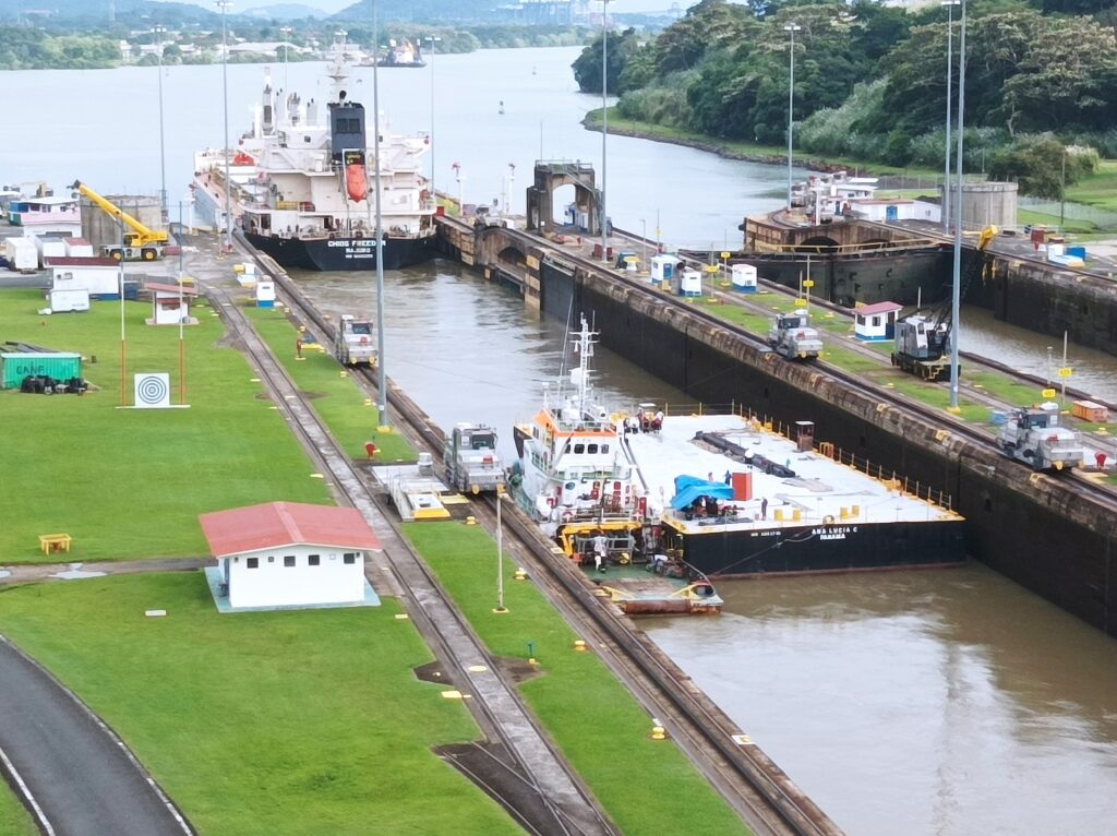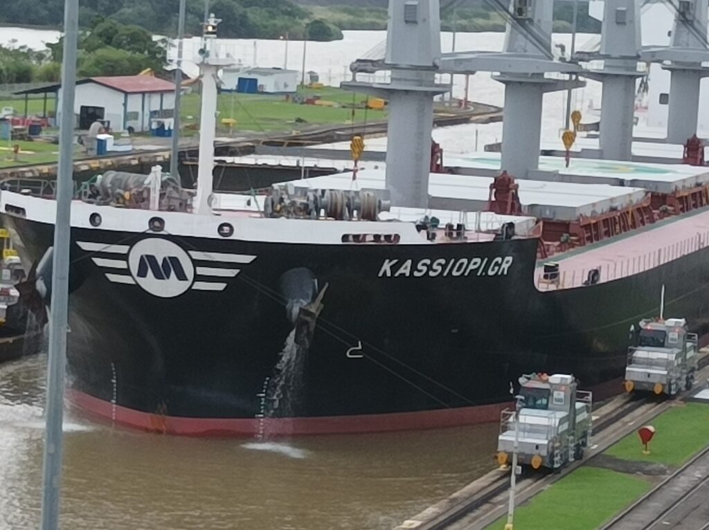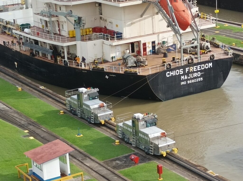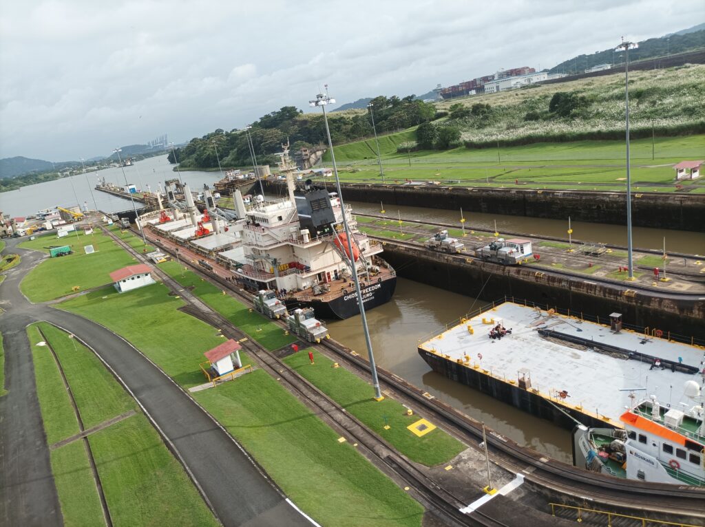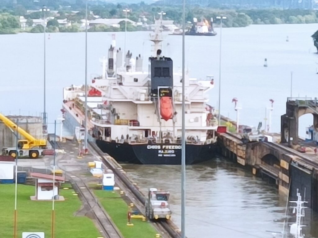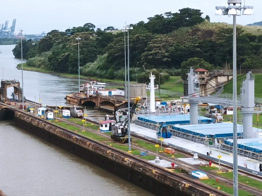 Hihtetlen látvány volt, ahogy betolják a hatalmas hajókat a zsilipkamrába, és hátul még sokkal hatalmasabb hajók kerülnek zsilipelésre… Kb 5 hajó zsilipelését nézhettük végig a látogatási idő alatt, nagyon gyorsan megy…