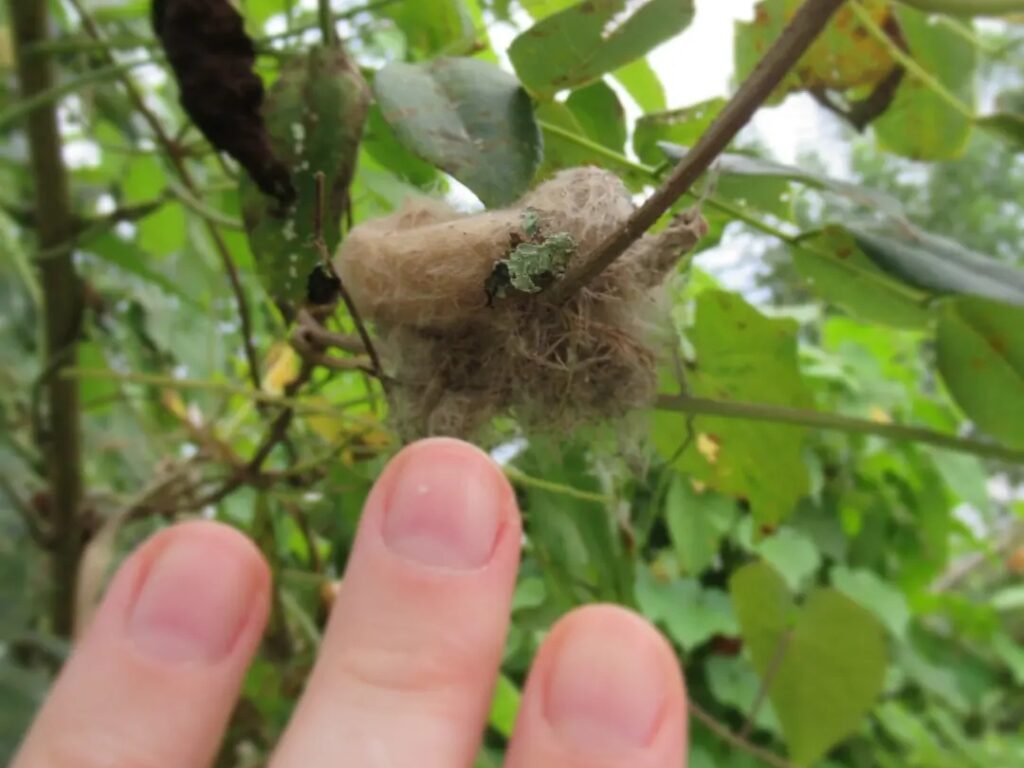 Egy korábbi fotó, egy már elhagyott kolibri fészeknél láthatjátok, mekkorka egy fészek: