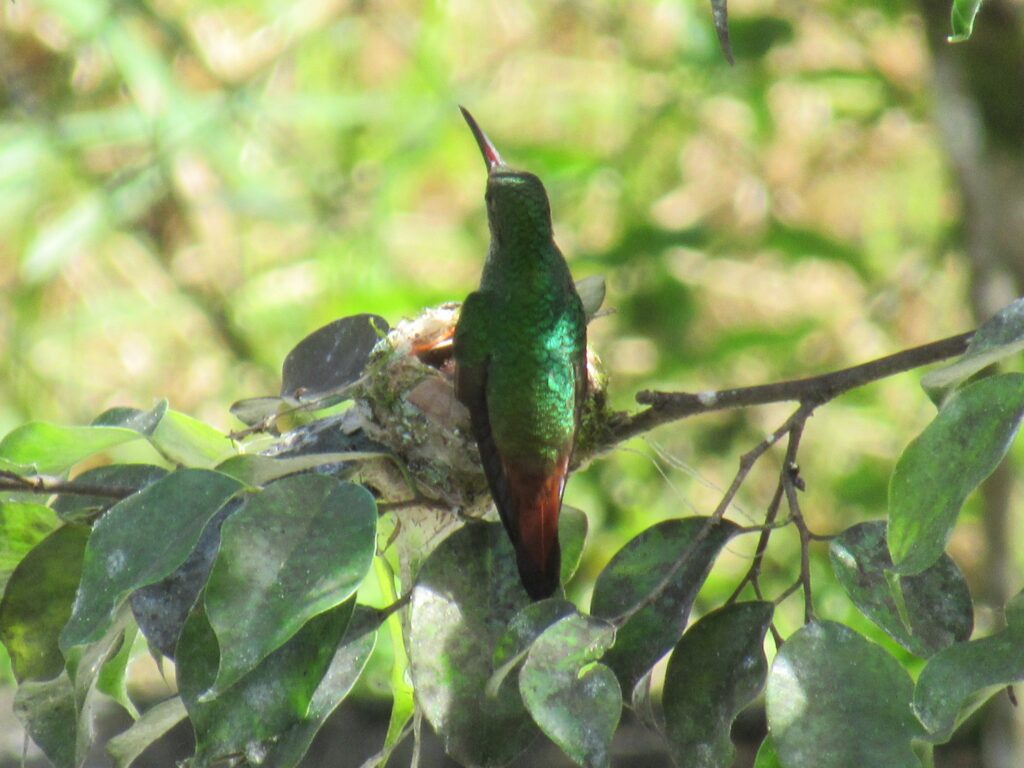 Ma reggel meghallottam egy kolibri hangját mikor reggeliztem kora reggel a teraszon s láttam ahogy szálldos egy kisnövésű fa ágai között… Mivel nem ment el, bementem a mobilért s megpróbáltam lefilmezni – sikerült, kb 1 perc –