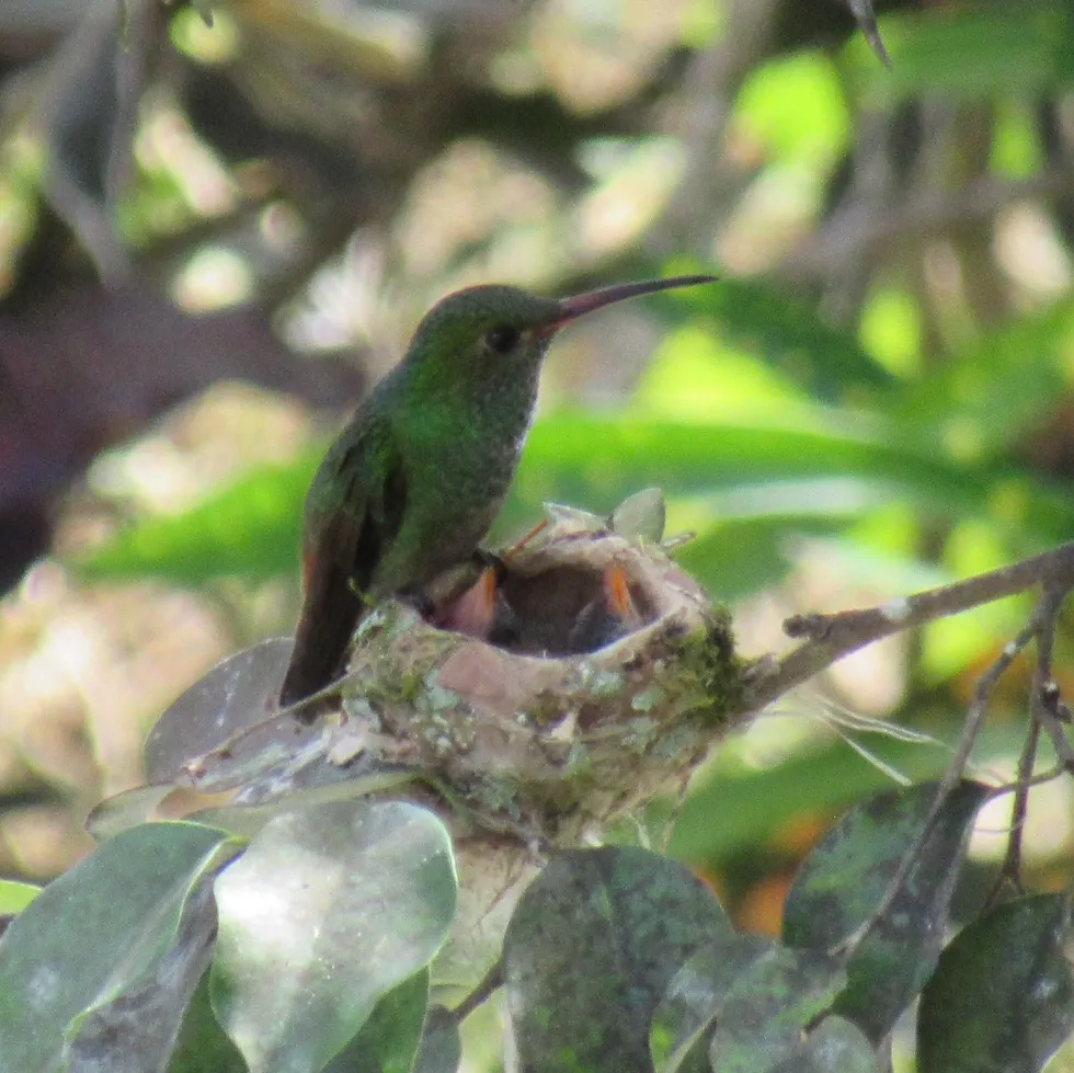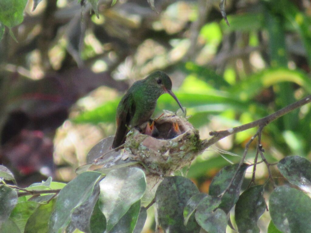 Bizony, fiókák, még most nyilt ki a szemük! A kolibrik közül egy pár a házunk előtti fán épitett fészket, s már vannak fiókák is…